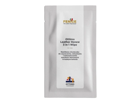 Innowacyjna, jednorazowa chusteczka nawilżana Ottimo Leather Renew 3 in 1 Wipe, przeznaczona do pielęgnacji wyrobów skórzanych, takich jak sofy, wnętrza samochodów, kurtki, buty i torby – we wszystkich kolorach. Leather Renew 3 in 1 to produkt, który działa na trzy sposoby, by zapewnić skórze doskonałą kondycję poprzez oczyszczanie, odnawianie i zabezpieczanie.
