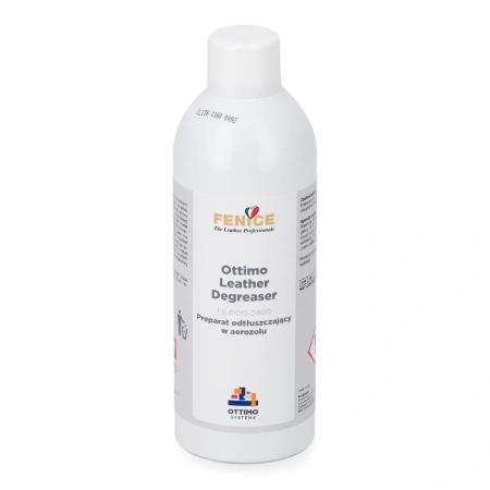 FE 61015 0400 - OTTIMO Leather Degreaser: H222: Skrajnie łatwopalny aerozol. H229: Pojemnik pod ciśnieniem: ogrzanie grozi wybuchem. H315: Powoduje podrażnienie skóry. H336: Może powodować senność lub zawroty głowy. H411: Toksyczny dla organizmów wodnych, działa szkodliwie w środowisku wodnym z długotrwałymi skutkami. P102: Przechowywać poza zasięgiem dzieci. P210: Trzymać z dala od źródeł ciepła, gorących powierzchni, iskier, otwartego ognia i innych źródeł zapłonu. Nie palić. P251: Nie przekłuwać ani nie spalać, nawet po zużyciu. P271: Używaj wyłącznie na zewnątrz lub w dobrze wentylowanych miejscach. P273: Unikać uwolnienia do środowiska. P280: Stosować rękawice ochronne/odzież ochronną/ochronę oczu/ochronę twarzy. P305 + P351 + P338: W PRZYPADKU DOSTANIA SIĘ DO OCZU: Ostrożnie płukać wodą przez kilka minut. Wyjąć soczewki kontaktowe, jeśli są i można je łatwo usunąć. Kontynuować płukanie. P403 + P235: Przechowywać w dobrze wentylowanym miejscu. Przechowywać w chłodnym miejscu. P410 + P412: Chronić przed światłem słonecznym. Nie wystawiać na działanie temperatury powyżej 50 °C/122 °F. P501: Utylizować zawartość/pojemnik zgodnie z lokalnymi przepisami. Składniki niebezpieczne: Węglowodory, C7-C9, izoalkany.