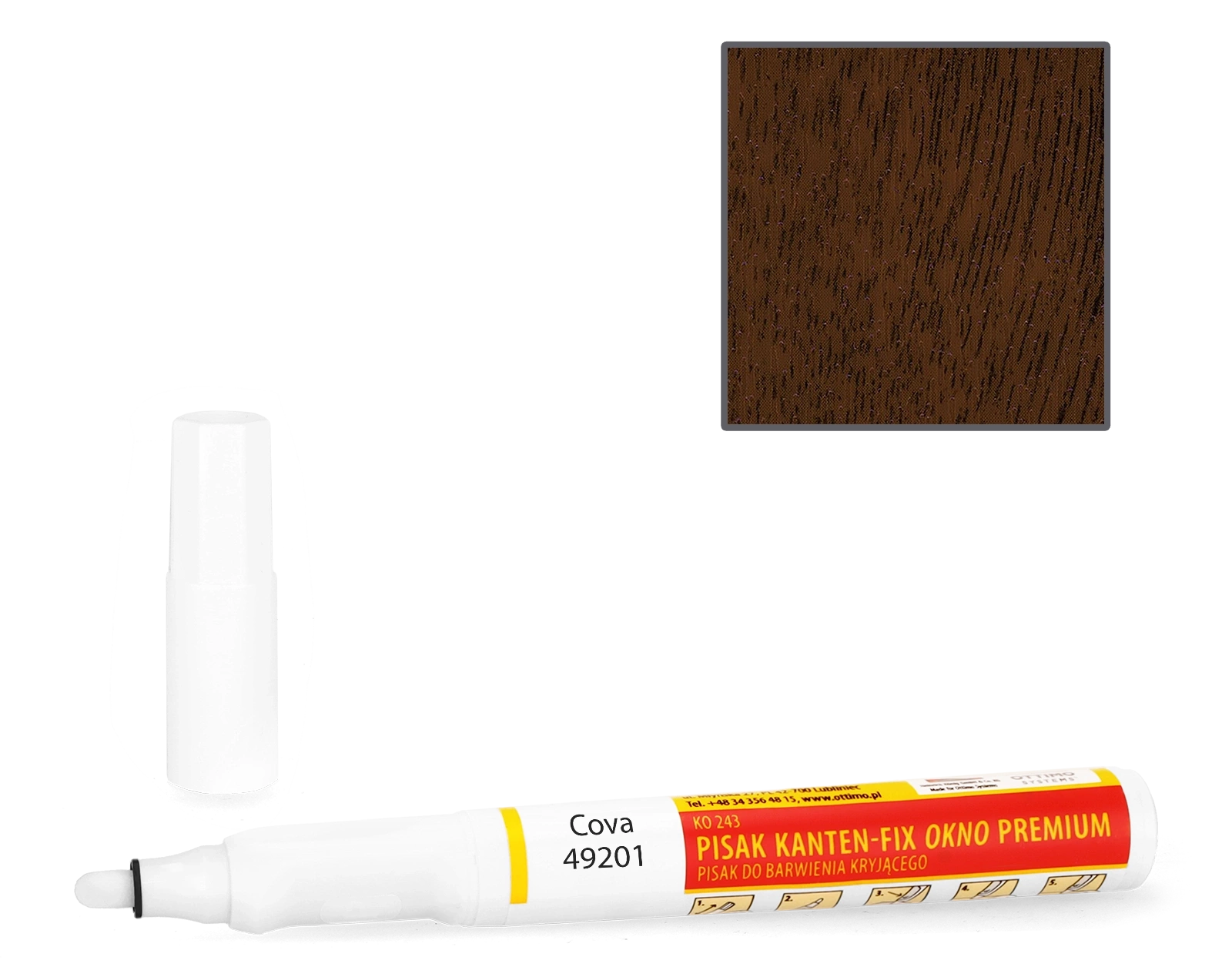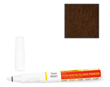 Pisak retuszerski KANTEN-FIX OKNO z szybkoschnącą, wodoodporną, samoutwardzalną, akrylową farbą kryjącą. Do barwienia naroży okiennych i innych uszkodzeń na profilach okiennych z drewna i PVC. Szczególnie przydatny w procesie produkcji stolarki otworowej do barwienia miejsc połączeń kątowych. Może być stosowany także do naprawy krawędzi mebli, drzwi oraz innych powierzchni z drewna, płyt czy tworzyw sztucznych. Do zastosowań wewnątrz pomieszczeń i na zewnątrz. Farba odporna na niekorzystne działanie czynników atmosferycznych. Mazak przed użyciem wymaga aktywacji (szczegóły w instrukcji).