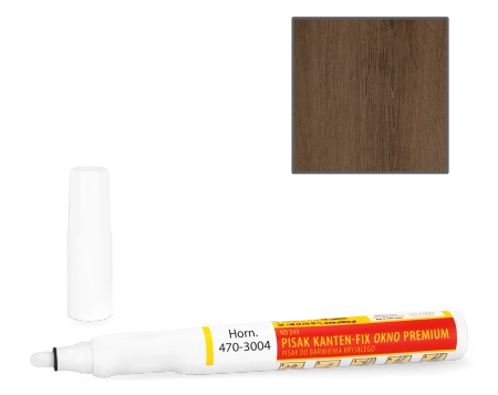 Pisak retuszerski KANTEN-FIX OKNO z szybkoschnącą, wodoodporną, samoutwardzalną, akrylową farbą kryjącą. Do barwienia naroży okiennych i innych uszkodzeń na profilach okiennych z drewna i PVC. Szczególnie przydatny w procesie produkcji stolarki otworowej do barwienia miejsc połączeń kątowych. Może być stosowany także do naprawy krawędzi mebli, drzwi oraz innych powierzchni z drewna, płyt czy tworzyw sztucznych. Do zastosowań wewnątrz pomieszczeń i na zewnątrz. Farba odporna na niekorzystne działanie czynników atmosferycznych. Mazak przed użyciem wymaga aktywacji (szczegóły w instrukcji).
