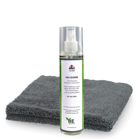 • Kompletny zestaw do pielęgnacji mebli - ekologiczny preparat HU-GONE do czyszczenia powierzchni o różnych stopniach połysku oraz delikatna, bezszwowa ściereczka z wysokojakościowej mikrofibry